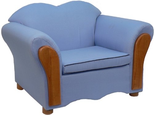 CV54 Features: -Chair.-Material: 50pct poly and 50pct cotton twill.-Strong wood frame covered with high density flame resistant foam.-Zippered cushion cover is machine washable.-Ages 1-5. Color/Finish: -Color: Blue.-Front wood panels are Real Alder wood finished in Toffee with chocolate glaze.