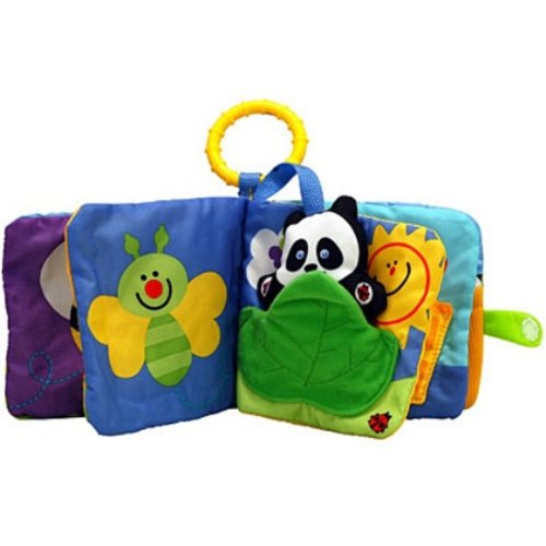 It has a sweet Panda Bear tethered to the book who can be inserted into the scene on each page. Panda moves from page to page as he goes through his day of adventures. With a total of 4 easy to turn pages, each with a place for Panda to "hide", baby will have lots of fun exploring this book time and time again.