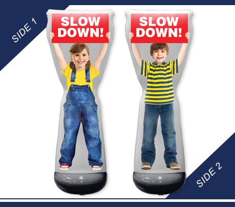 Life can be busy and it's difficult to keep an eye on your children at play.That's why we developed the 2 Sided Inflatable Traffic Safety Signs. If you have children, know someone that does, or even if you just care about the well being of the kids in your neighborhood, these child safety signs are for you.Child Safety Signs are life size at 60 inches tall, realistic and proven to help slow down speeding cars BEFORE they reach your children.* Lifesize* Realistic* Waterproof* Easy Setup* Durable* 2 Sided*Guaranteed not to Tip OverIncludes FREE air pump and everything you need to get started.